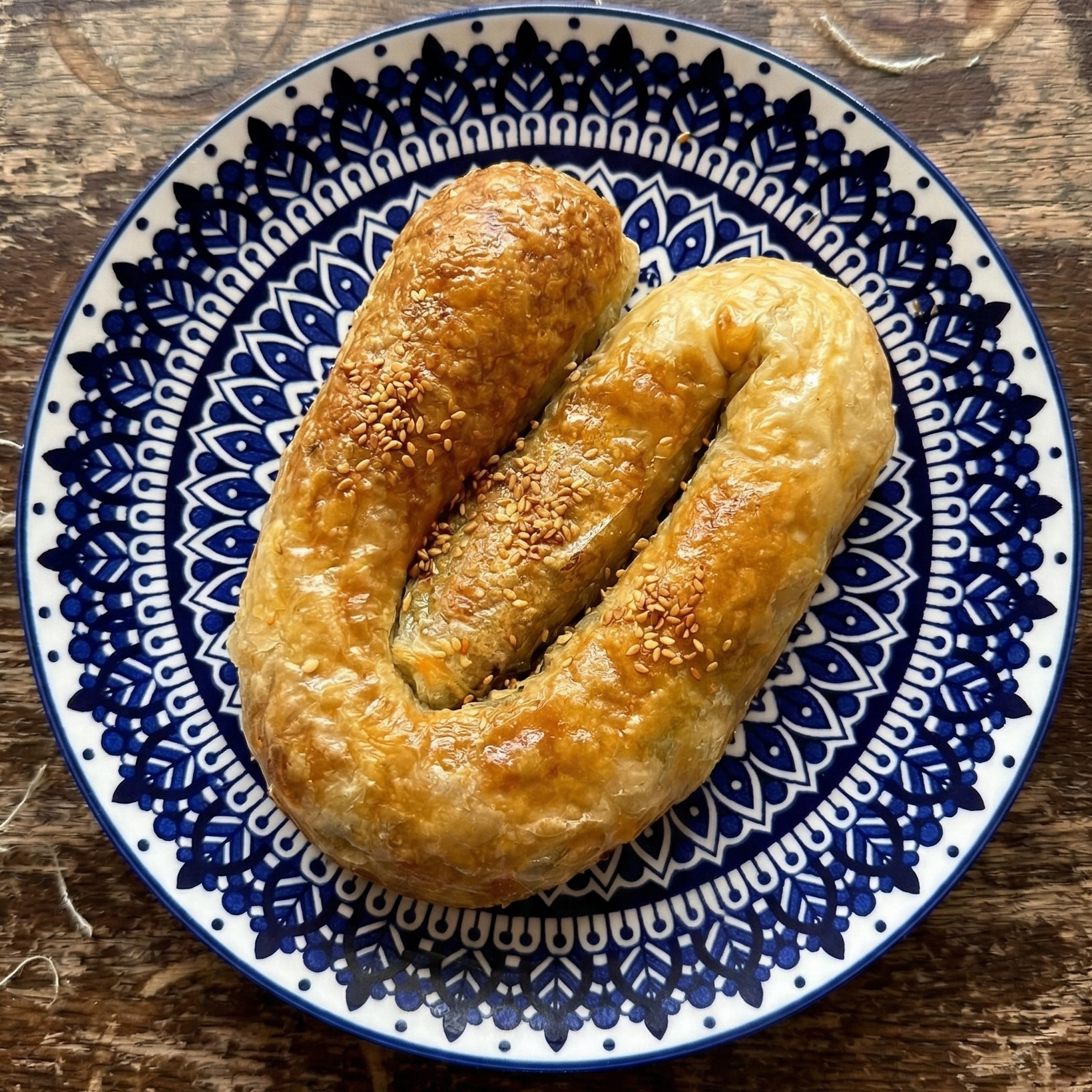 (bur-ECK, Arm Pastry) Sweet, spiral-shaped rolls made with yeast dough, filled with Sesame paste (Tahini), Sugar, topped with Sesame Seeds.