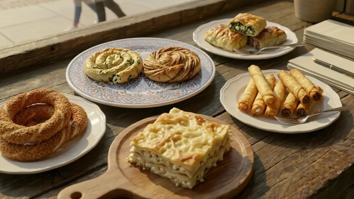 (Soo bur-eh-ee, Water Pastry) Tender, lasagna-like layers of dough filled with boiled dough and Feta Cheese.
