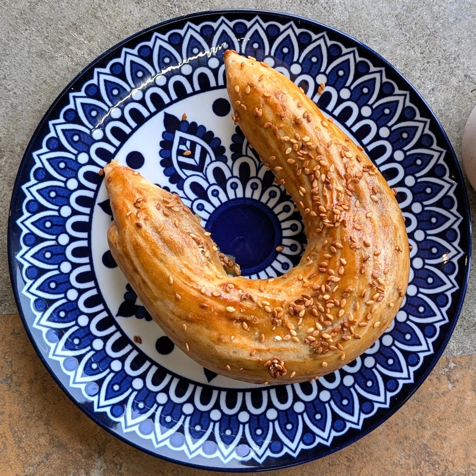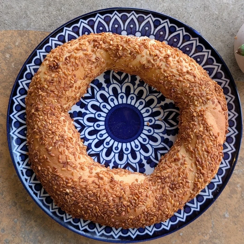 (A Turkish Bagel) Molasses-dipped, sesame-crusted Bread ring; crunchy outside, chewy inside.